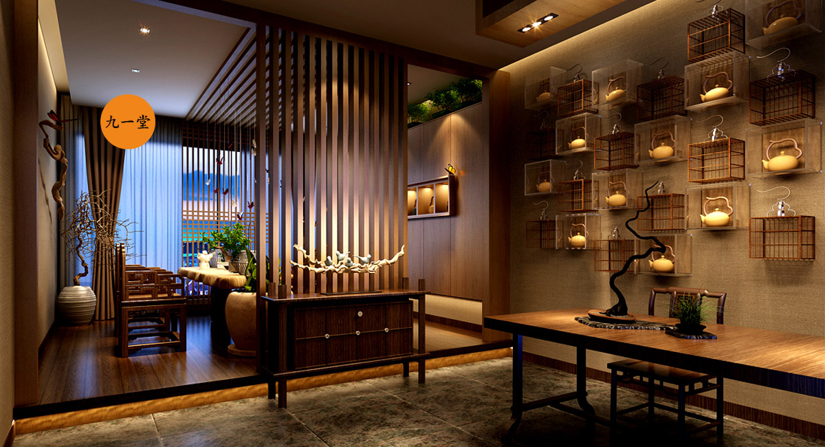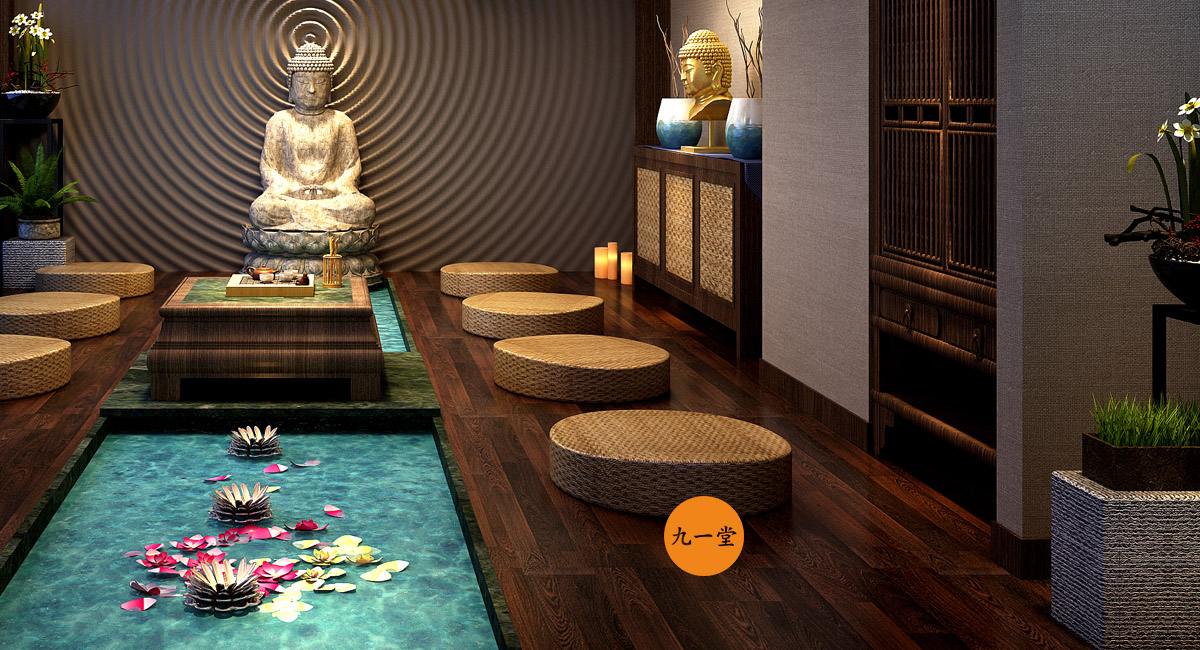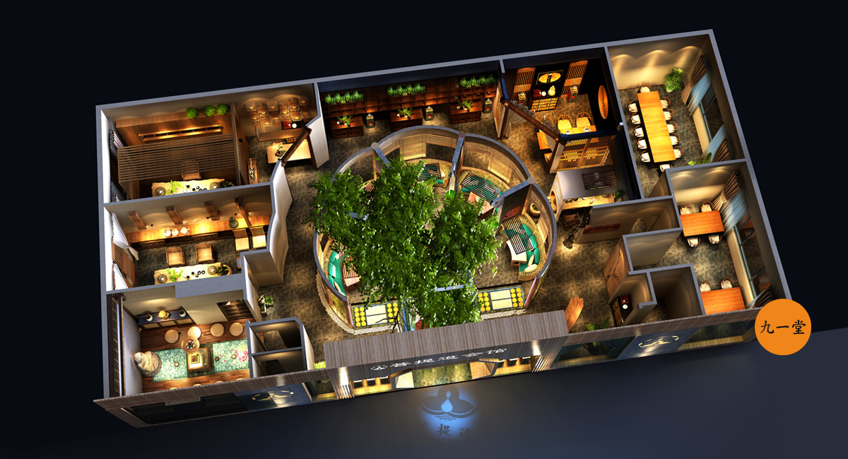 客戶是一個廣東的煤炭老板,資源與圈層當然也很豐富,財富積累也是有著更高的要求,圈層朋友精神需求也是更高,希望有一個自己休憩,交流,暢談的空間,兼顧朋友的聚會,故而有了菩提道養生會館。成都九一堂商業空間設計多年的茶藝館設計經驗,能夠很清晰洞察客戶需求和商業空間應該注入的文化故事,經與甲方多次交流,選址成都。九一堂商業空間設計空間布局以“菩提道”之核心精神為本,強調形與意的高度融合。“天圓地方”的水景為整個空間布局的視覺中心與焦點,一切動線的設置以它而展開。中心配以碩大的菩提樹,周圍輔以圍坐,水中有景,景中有調,好似悟道情景的再現。此刻慢慢溢出的水流聲,琴聲,論道的談笑聲,在“菩提道”得以升華和共鳴。這是禪宗的最高境界!放下!自在!茶藝館設計不光要把文化植入與落地,更重要的是設置消費體驗與裝置, 讓整個品牌的精神價值得以輸出.