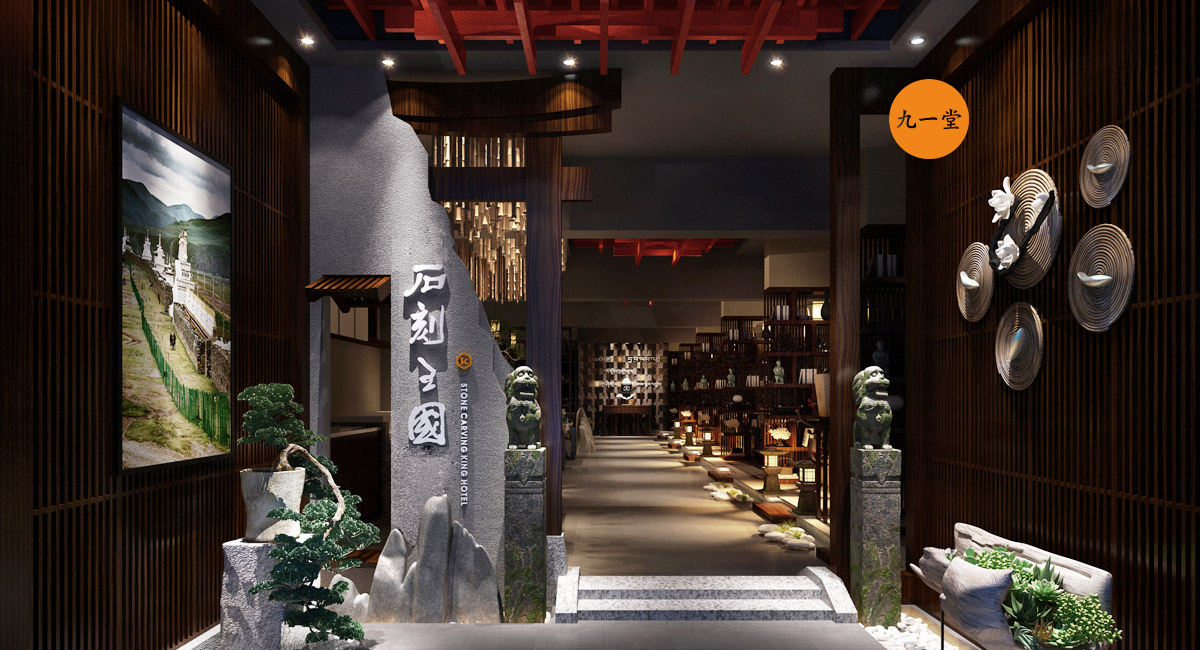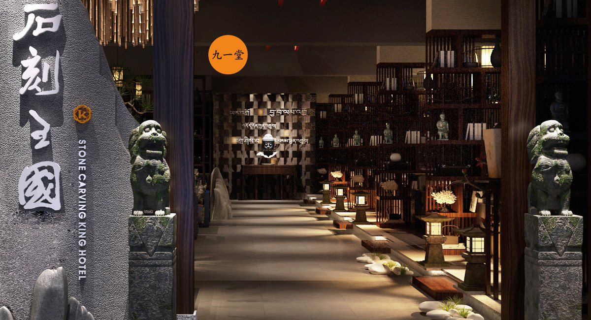 石刻王國茶樓是石刻王國酒店的配套茶樓和早餐廳,九一堂設計本著表現(xiàn)石渠的石刻非遺文化為主,結合茶樓的中式文化相結合來設計。在整個室內空間多用了石刻文化中的石材與溫潤的木材對比碰撞,粗中有細,細中有意,意中有景.表達方式上原生態(tài)竹藝,條形水泥磚自由構成,用機理與材質表現(xiàn)草原的豪邁和原生態(tài),成品實木雕花和意境山巒層層疊嶂,用意向表達石渠草原的神秘。九一堂設計用心體驗材質與文化的表達,帶你領略在豪邁草原上的精致茶藝文化空間。