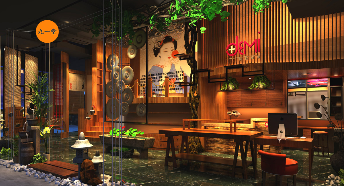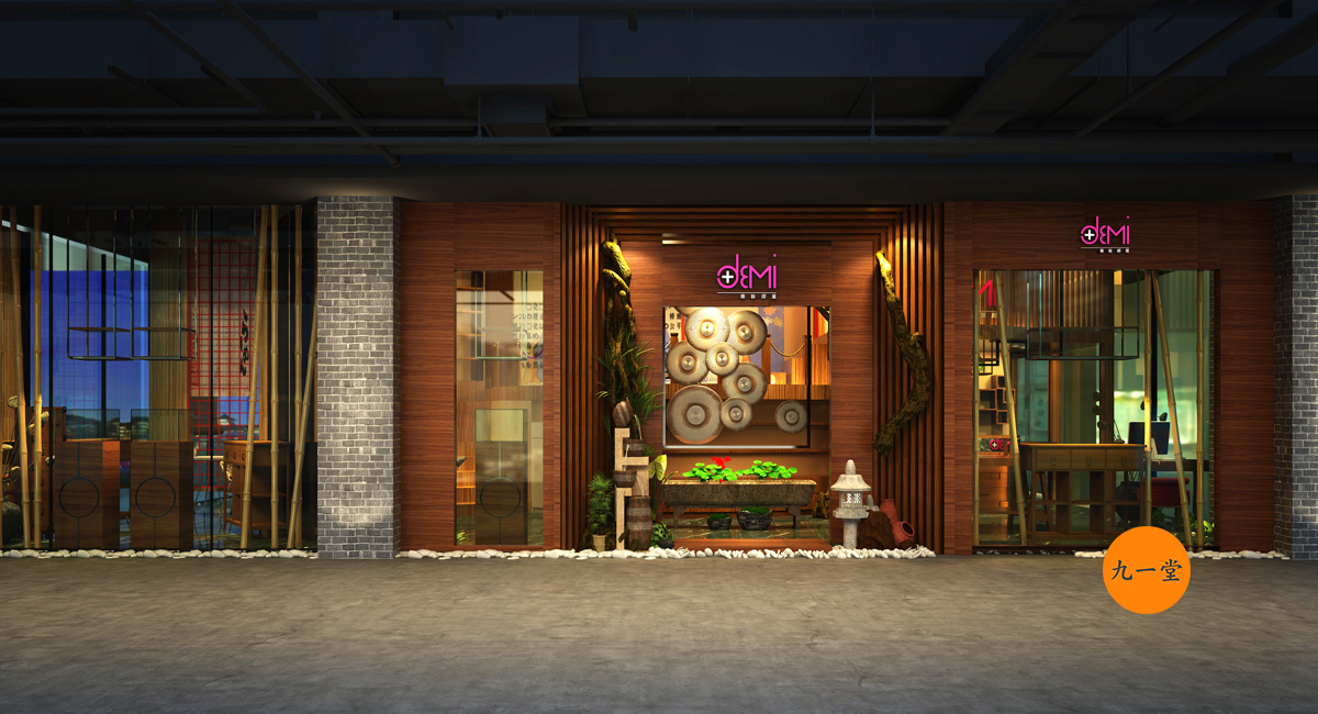 日式黛米藥妝部屋(DEMI)美容院所有產品均進口韓日最高科技的護膚產品。產品與國內最大的不同,應該是品牌針對人群的不一樣, 甲方是從事美容行業多年的業內人事, 之所以選擇日式風格來闡述自己的空間店面,這并非偶然,一方面產品大部分來自日本,另一方面甲方非常喜歡日式的禪意文化.成都九一堂商業空間設計將日本的枯山水,一步一小景小景比的造景更有意境。整個空間體檢非常精致與品味,空間表現上張弛有度,緊湊與留白相輔相成。九一堂商業空間設計把空間體驗設計用到了極致。成都美容院設計一直是九一堂的核心競爭力, 門口的枯山石造景,隨著腳步的行進踏實木板進來,外墻繪制日式手繪圖,室內搭建假二層,增加趣味又增加了一個功能儲存空間。室內軟裝配有櫻花、麻布、白砂石、枯藤等來裝置,讓產品在景中展示。日式黛米藥妝部屋(DEMI)美容院除了空間體驗的設計打造外,還包括品牌形象的設計,極簡線條構成logo創意的主體,體現精致, 修復, 美滿的品牌內涵.