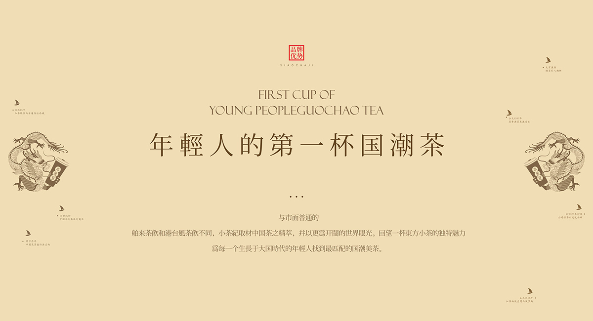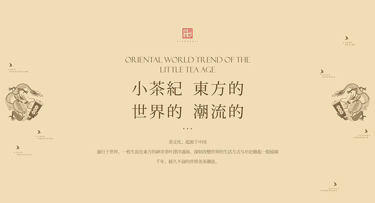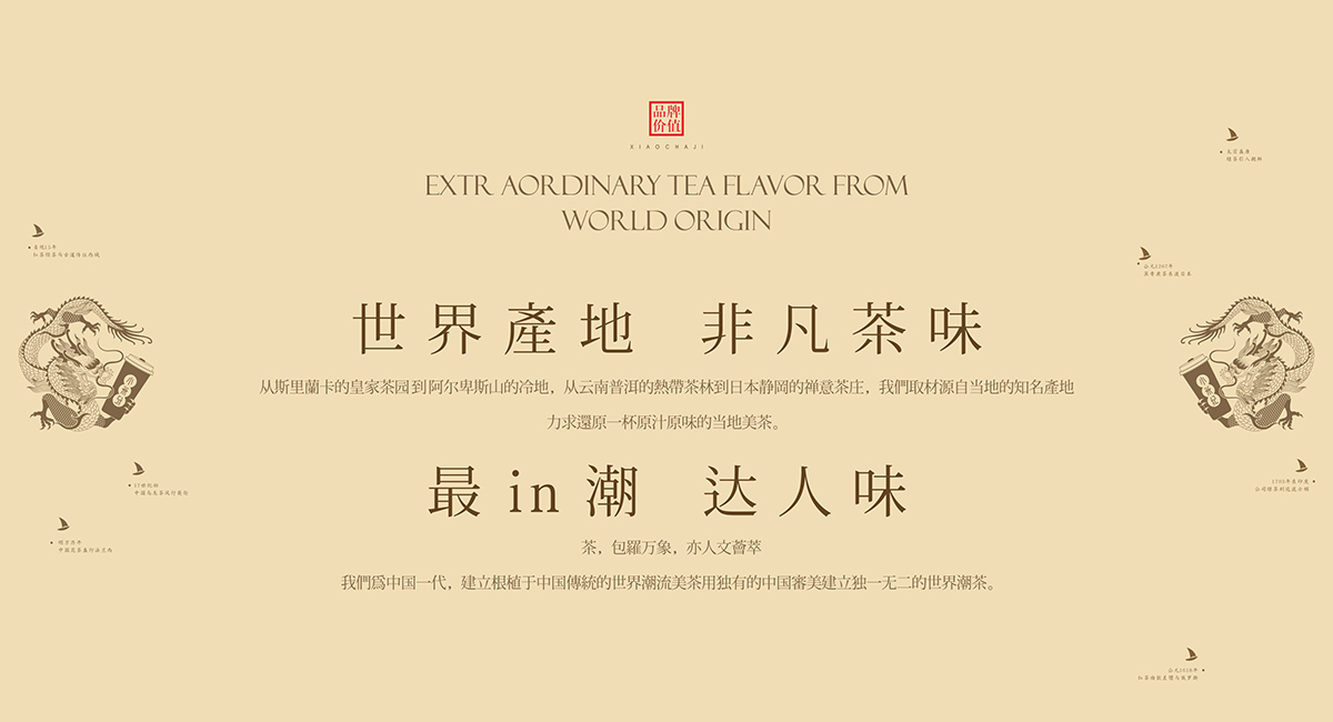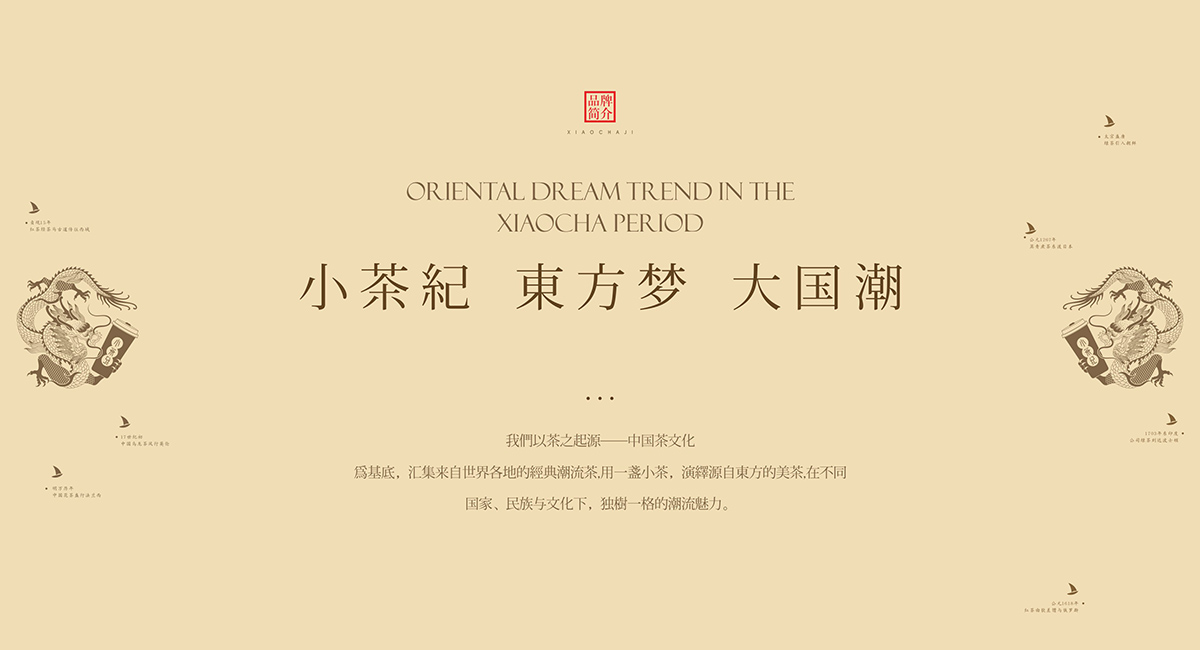 一葉神奇的東方樹葉,成為了風靡世界的中國潮。中國是茶的故鄉(xiāng),成都是茶文化的起源地。小茶紀,創(chuàng)建于成都,用一杯小茶紀成為風靡世界的東方美茶潮流。在小茶紀的空間設計上采用深藍和金色色調,體現(xiàn)小茶紀品牌的沉穩(wěn)的性格,但有沒有摒棄此品牌時尚的氣質,大面積鈦金的收邊提升了品牌整體品質。門頭的形象墻采用龍頭的設計契合項目的品牌定位,體現(xiàn)出大國的豪邁,白色杯子的運用使得整個空間時尚感十足。并且龍頭和杯子的運用在此空間中十分搶眼,是整個空間的點金之筆。