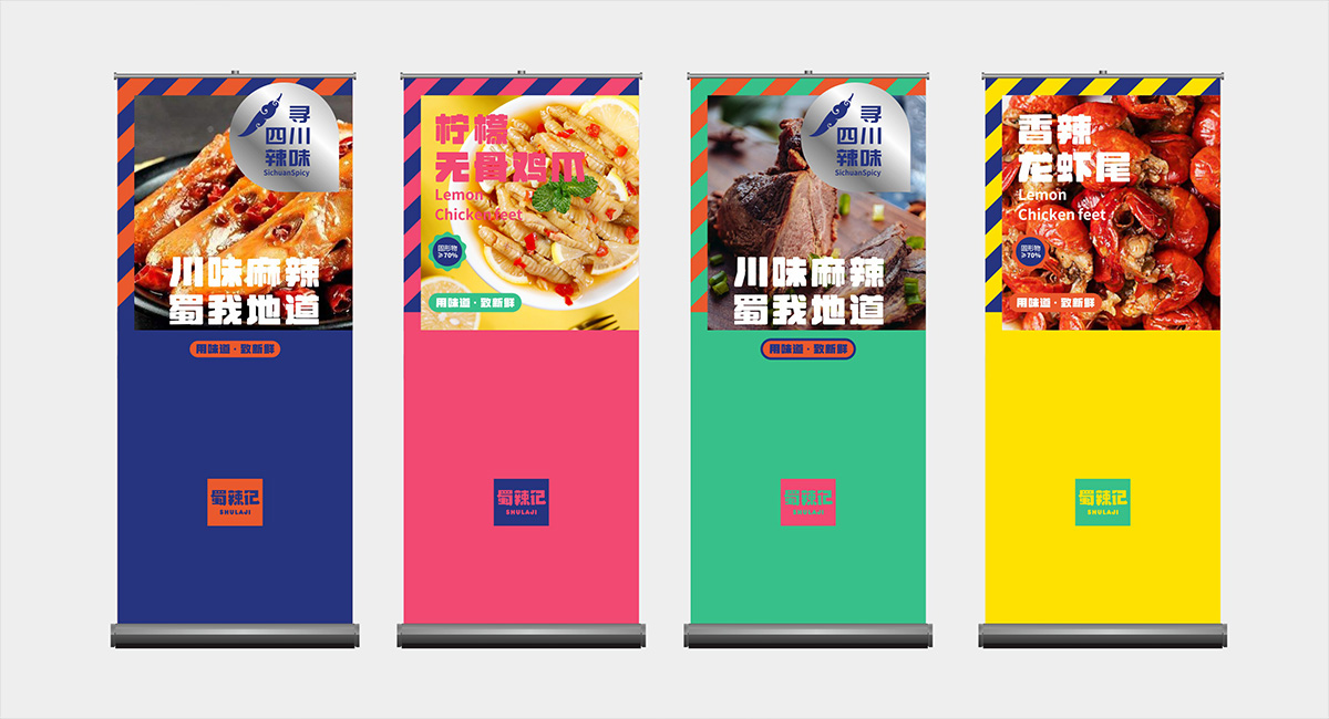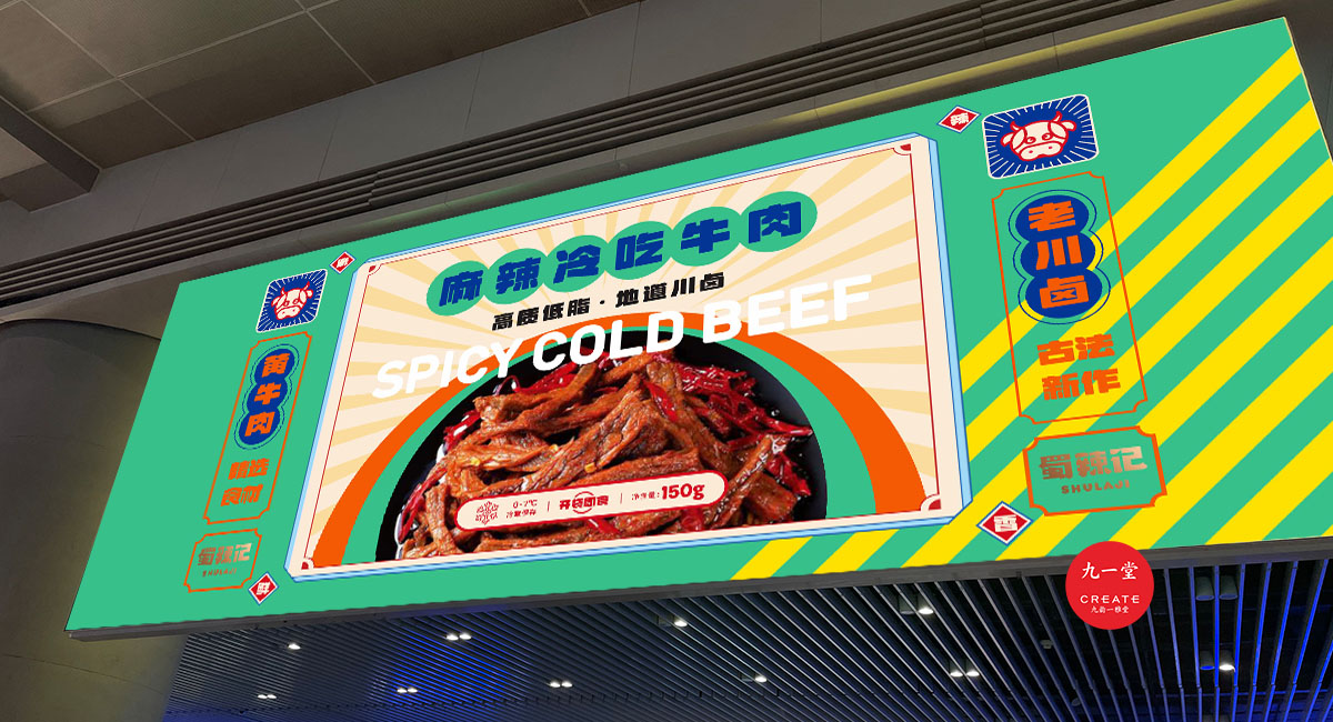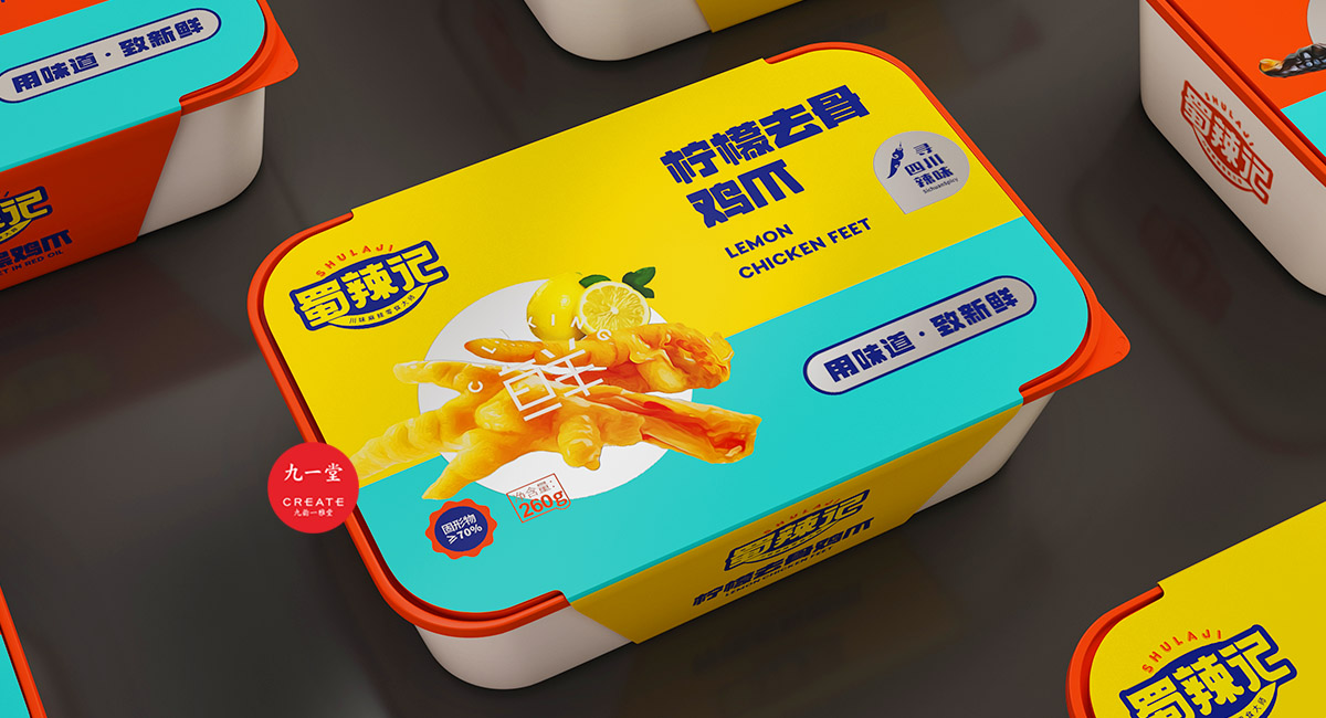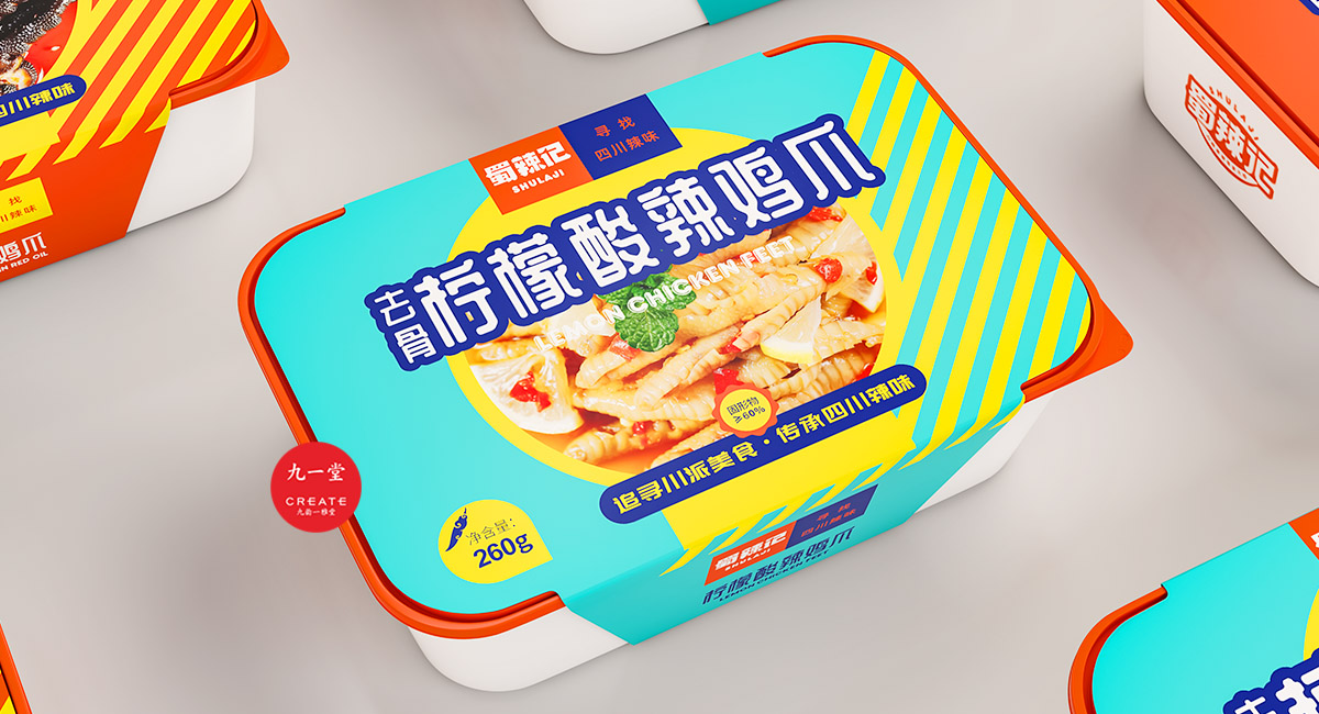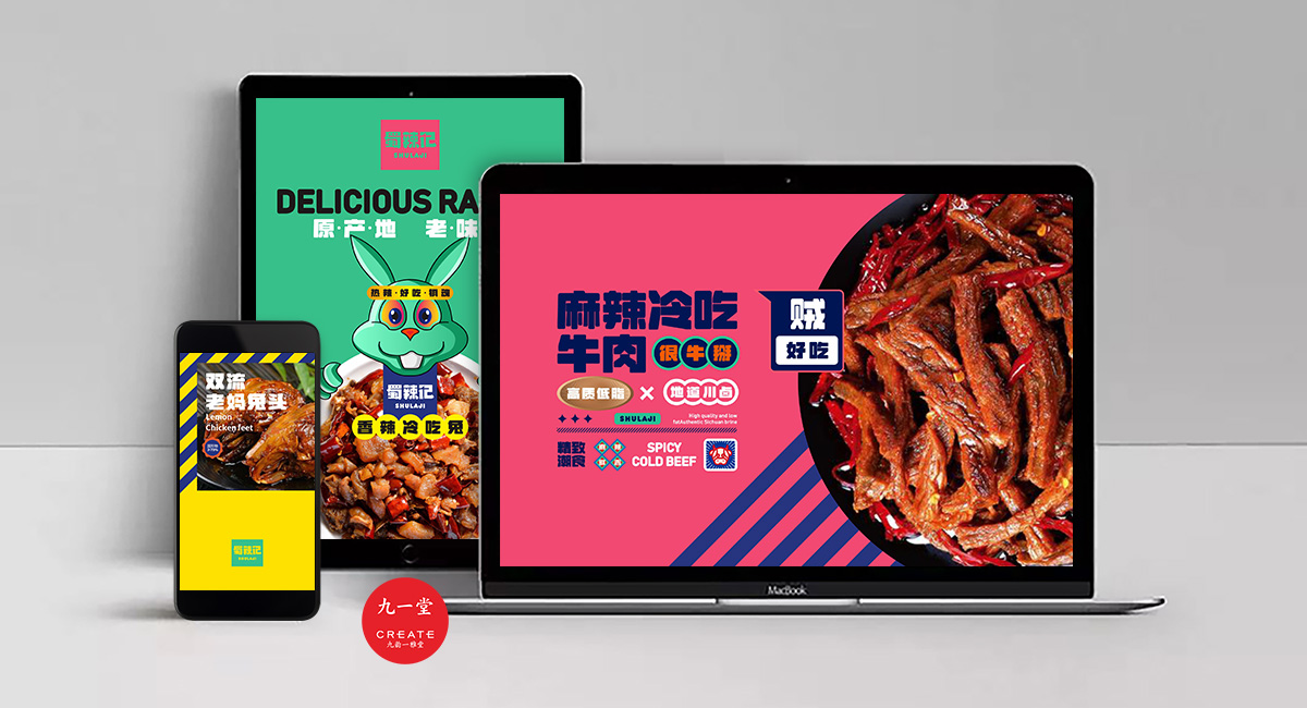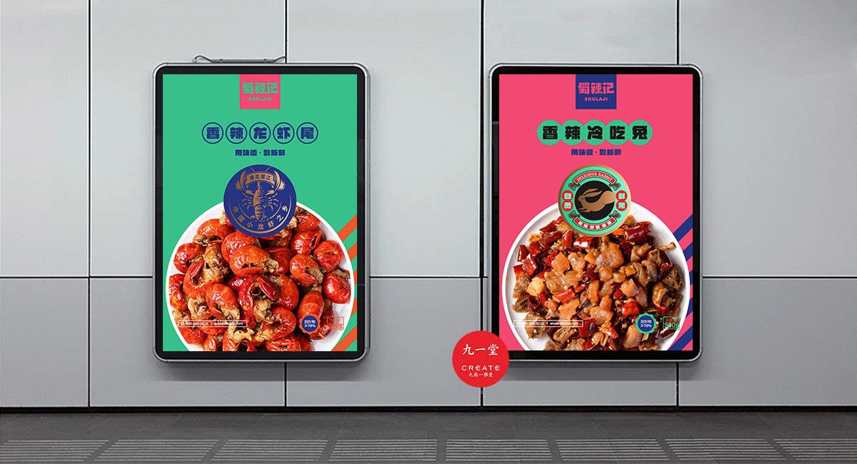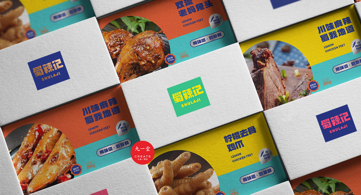 四川獨有地理環境,孕育出了許多以辣為主的酸辣雞爪、老麻兔頭、藤椒鴨等極具地方特色的傳統四川小吃。蜀辣記秉著熱愛川蜀辣味的初衷,重新發現四川味道讓極具地方特色的地方小吃煥發新的生機,讓大城市快節奏下生活和工作的年輕人閑下來時,能夠享受食物帶來的美好休閑時光。此次九一堂受邀參與蜀辣記項目制作,我們旨在打造一個新銳、開放、快樂的地方小吃品牌形象而努力。