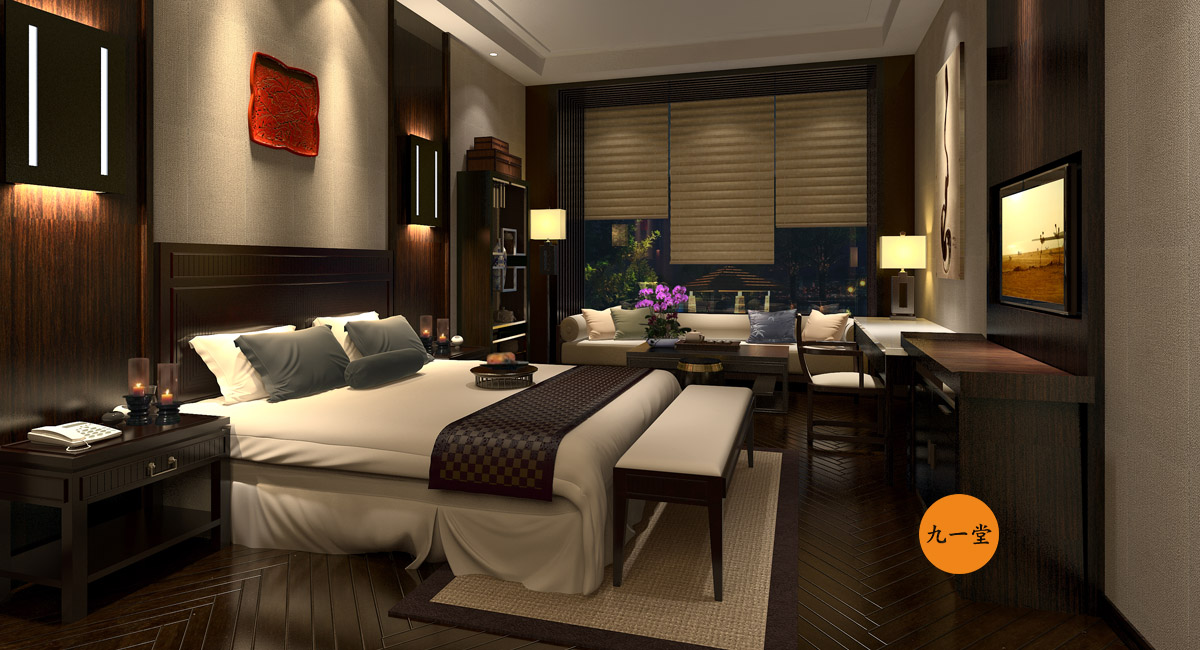 窗簾要結合整體裝修風格,也是提升包廂檔次的好方法。一般選擇防日照、懸垂感強的窗簾,高檔酒樓可選擇絲絨窗簾。窗簾的顏色需要與包房的整體色調相協調。窗簾兩側至少應超出窗口邊緣35厘米,能遮蔽窗戶這個墻面更好。