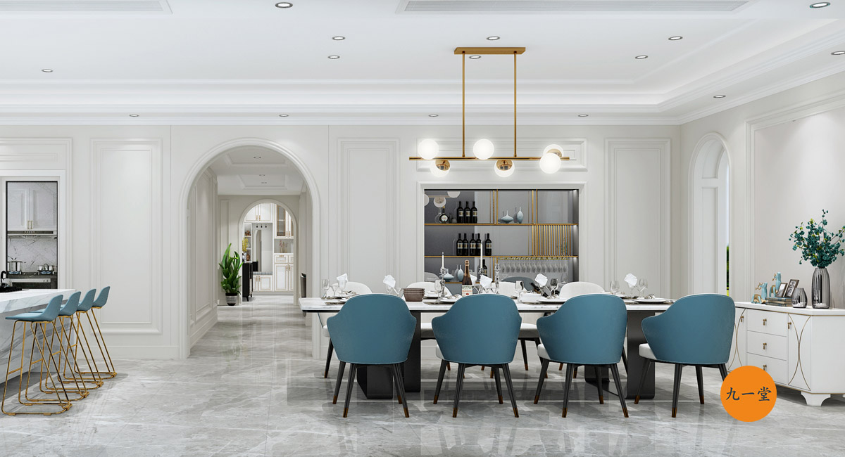 設(shè)計理念:本案以簡約的美式風(fēng)格為主,用目前流行的輕奢風(fēng)格混搭家具,體現(xiàn)主人的品味,餐桌以條形桌分餐的就餐習(xí)慣來滿足客戶長期生活在國外的生活習(xí)慣。整個空間干凈,休閑、雅致,浪漫。